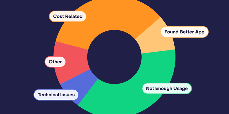 The high rate of cancellations due to low usage suggests that many apps could improve retention by enhancing onboarding and communicating value more effectively to drive engagement. Another common reason is cost, but as we’ll discuss later on, that may not be a price reason but a value issue.