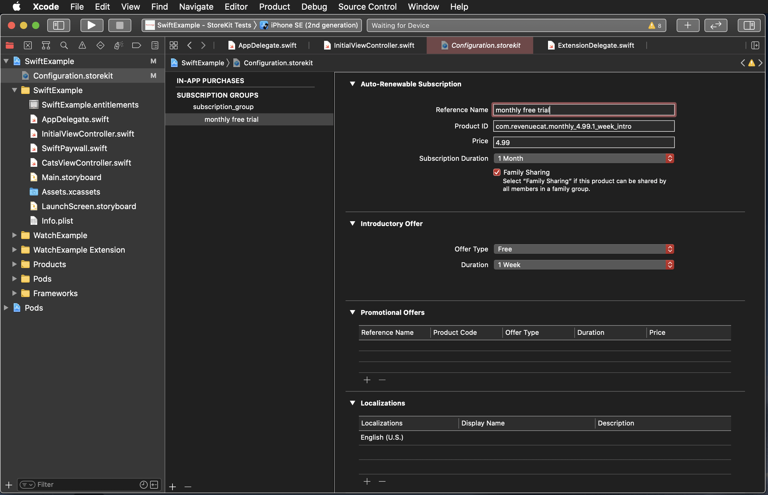 This section is for testing on a physical device. If you want to test on the simulator, skip to the next section for instructions on how to get started with StoreKit testing.