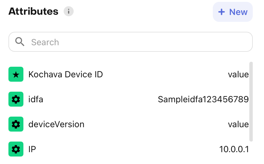 When calling the setKochavaDeviceId() helper, all of the required customer attributes will be automatically set. Alternatively, these properties can be set manually, like any other Attributes.