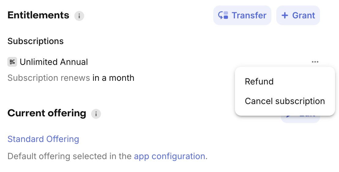 Google Play and Web Billing purchases can be refunded directly through the RevenueCat dashboard. Granting a refund will immediately expire the subscription and remove any entitlement access. By refunding directly through RevenueCat you can ensure that refunds are accounted for immediately in all charts and integrations.