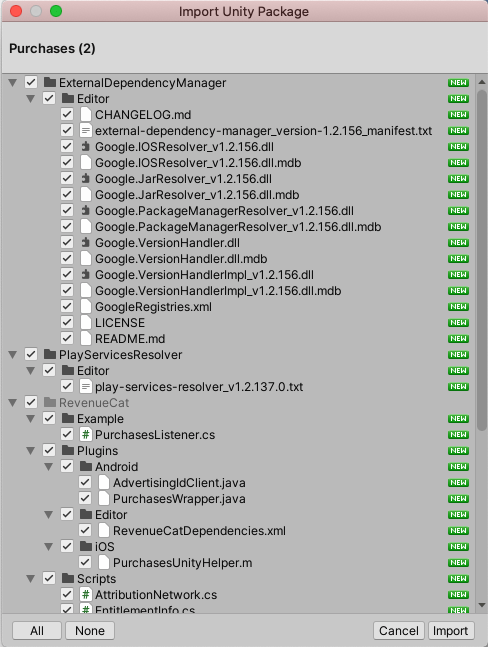Option 2: Import the Purchases Unity package