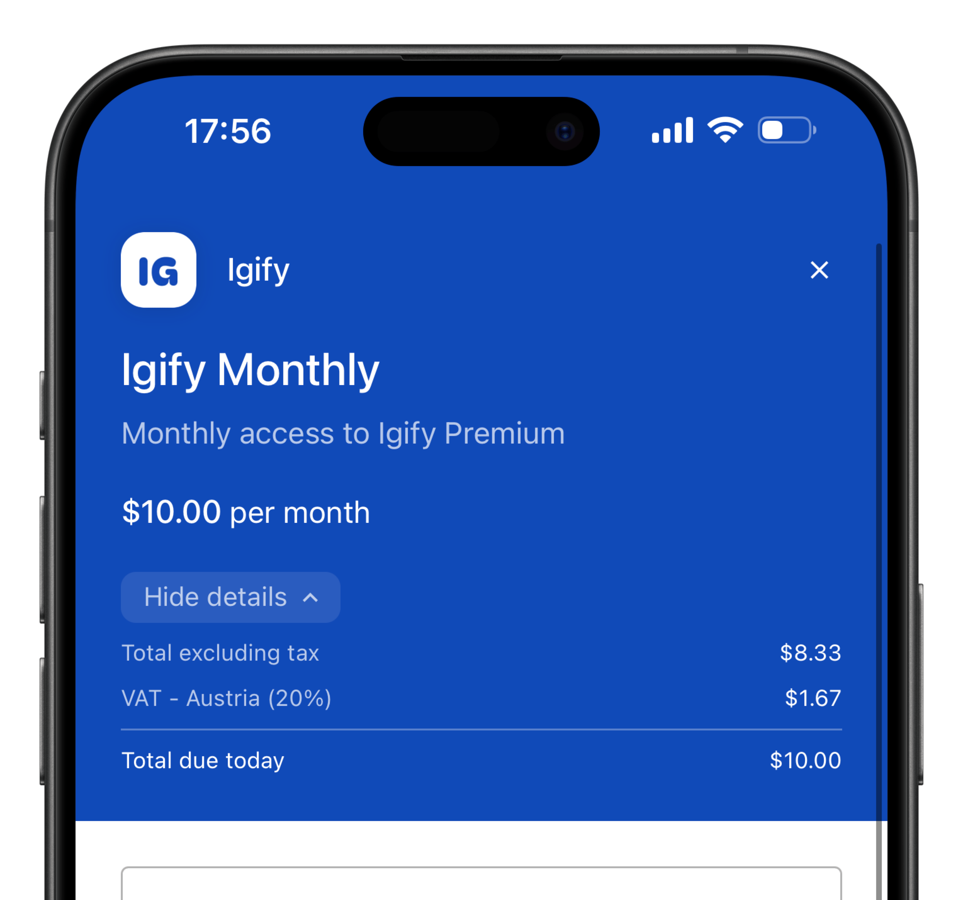 While RevenueCat and Stripe provide tools to monitor and charge sales tax and VAT for your business, you should seek tax advice from a qualified tax accountant if you're uncertain about your tax obligations, or how specific regional tax laws apply to you.