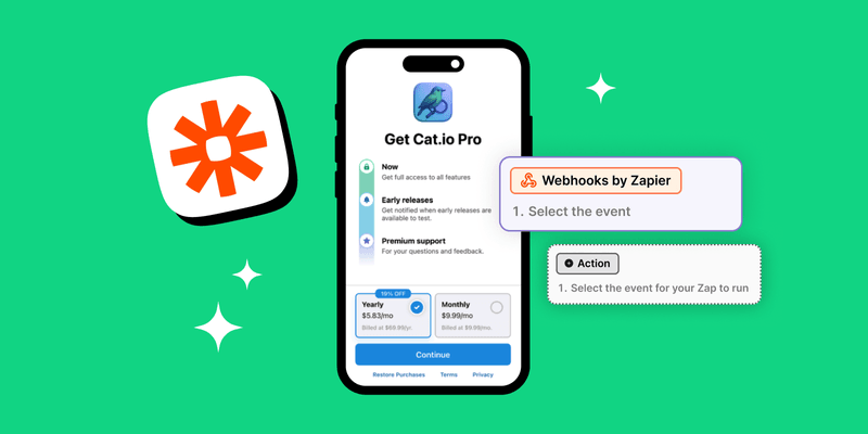 To automate notifications like “Your trial is ending soon,” we’ll use RevenueCat webhooks to detect subscription events and Zapier to handle the actual messaging (e.g. email or push).