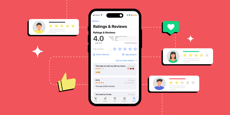 Note: When we say “app store”, we’re generalizing across the Apple App Store and Google Play Store, as well as other Android app distribution platforms like the Huawei App Gallery and Amazon Appstore. The ratings and reviews work in similar fashion across all of these.