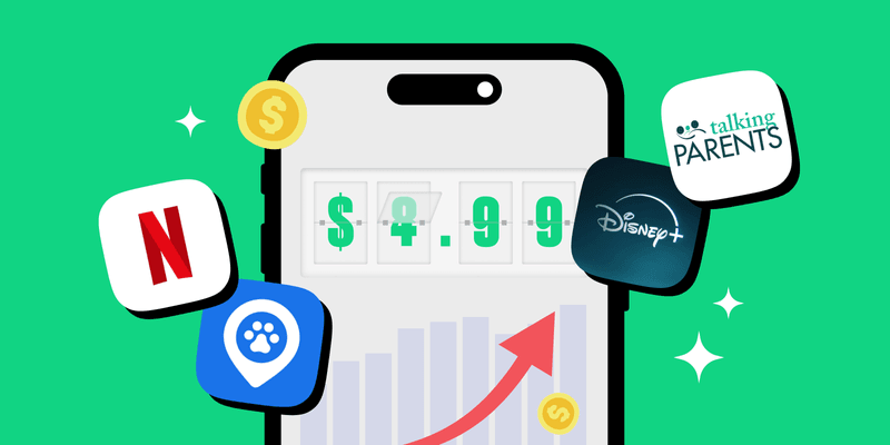 Price increases vary greatly for products; some do smaller incremental increases while others, like TalkingParents, twice increased their price by 100% ($4.99 to $9.99) and a second of 150% with the additional tier at $24.99.