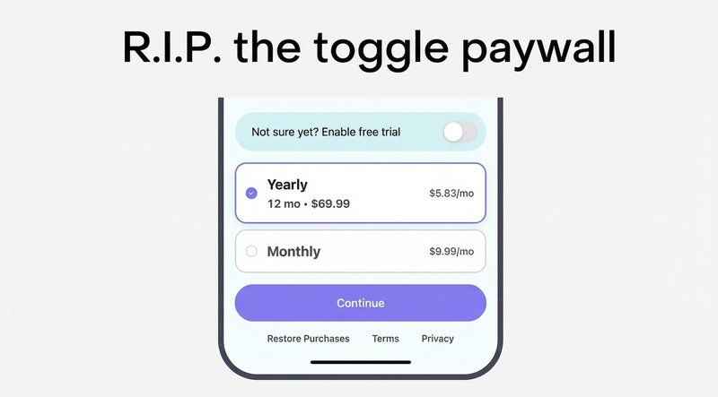 The death of the toggle paywall on iOS marks the end of an era. It was a wild ride, and it made a lot of developers a lot of money. But the App Store is Apple’s house, and they make the rules