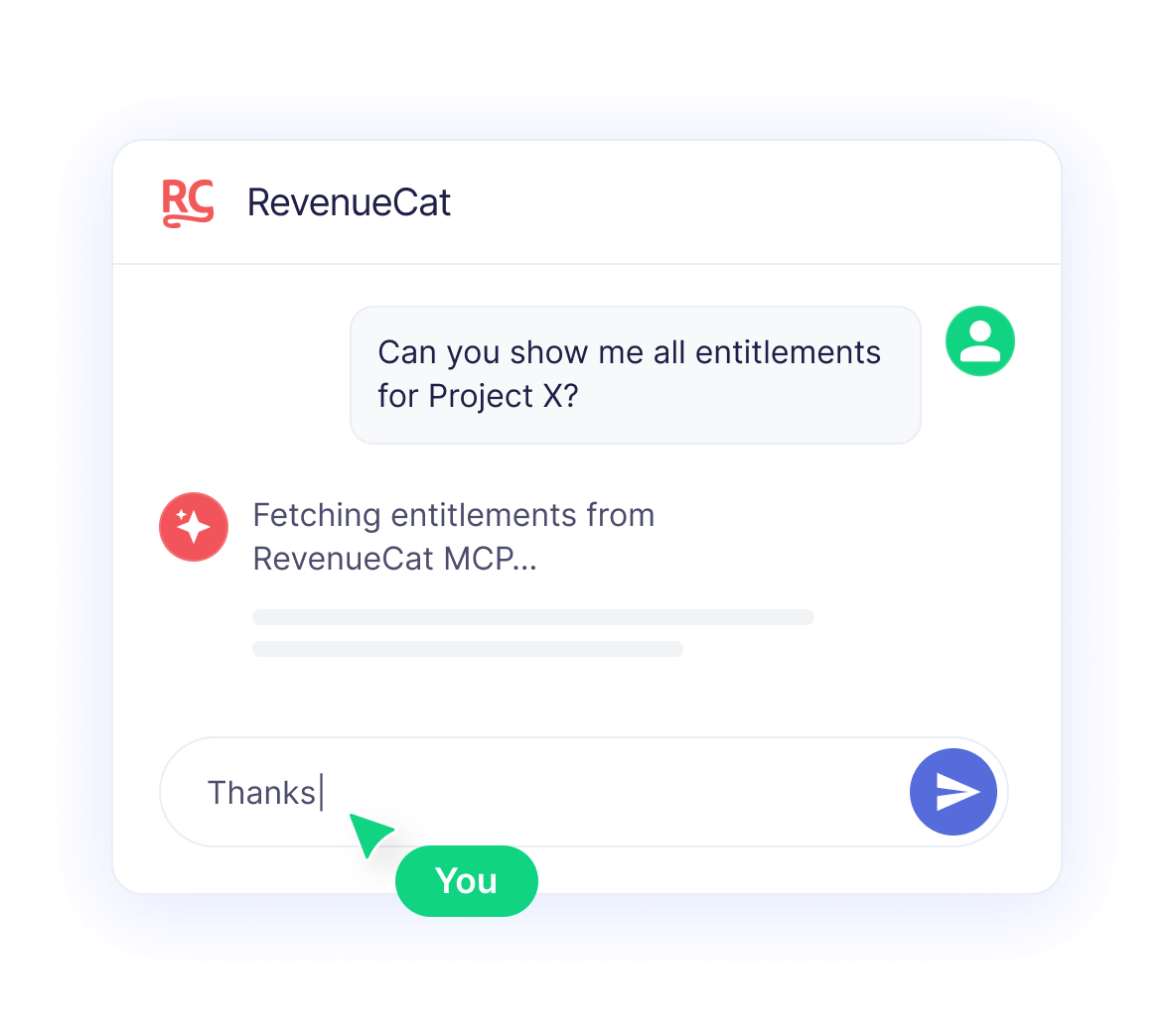 If you’re building AI assistants or developer-focused tools, you can connect to RevenueCat via the RevenueCat MCP. This means assistants like Claude, Cursor, or Copilot can query and manage subscription management on behalf of users without leaving your interface.