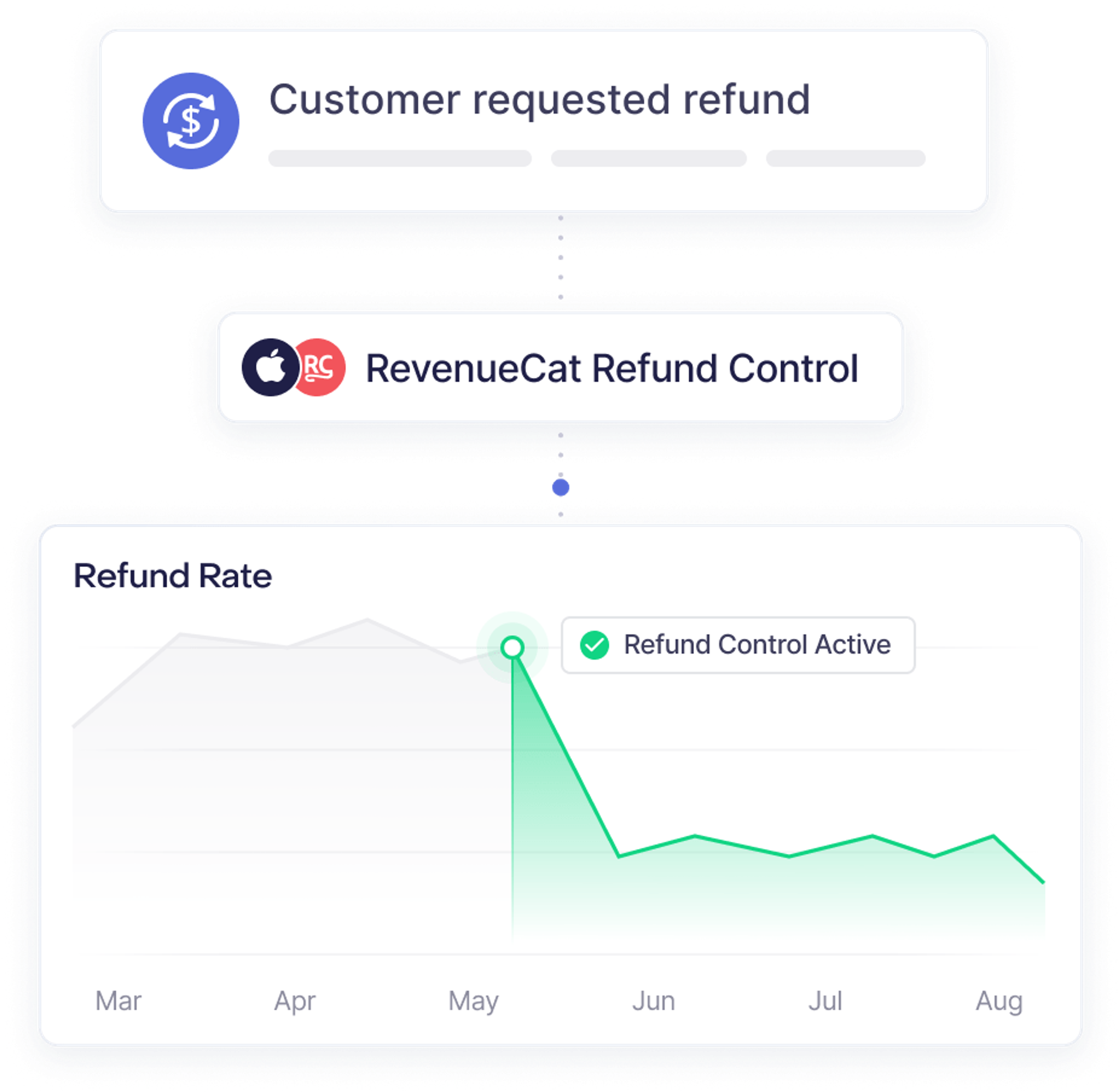 Automatically handle Apple refund requests with Refund Control, powered by usage data and your refund preferences, to prevent auto-approved refunds and to help you retain more revenue without manual effort.