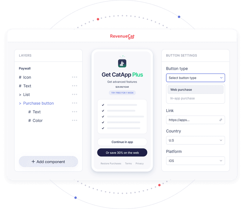 これらの課題をまとめて解決できるのが、RevenueCatが提供するモバイルアプリ向けWeb決済ソリューション「Web Purchase Button です。