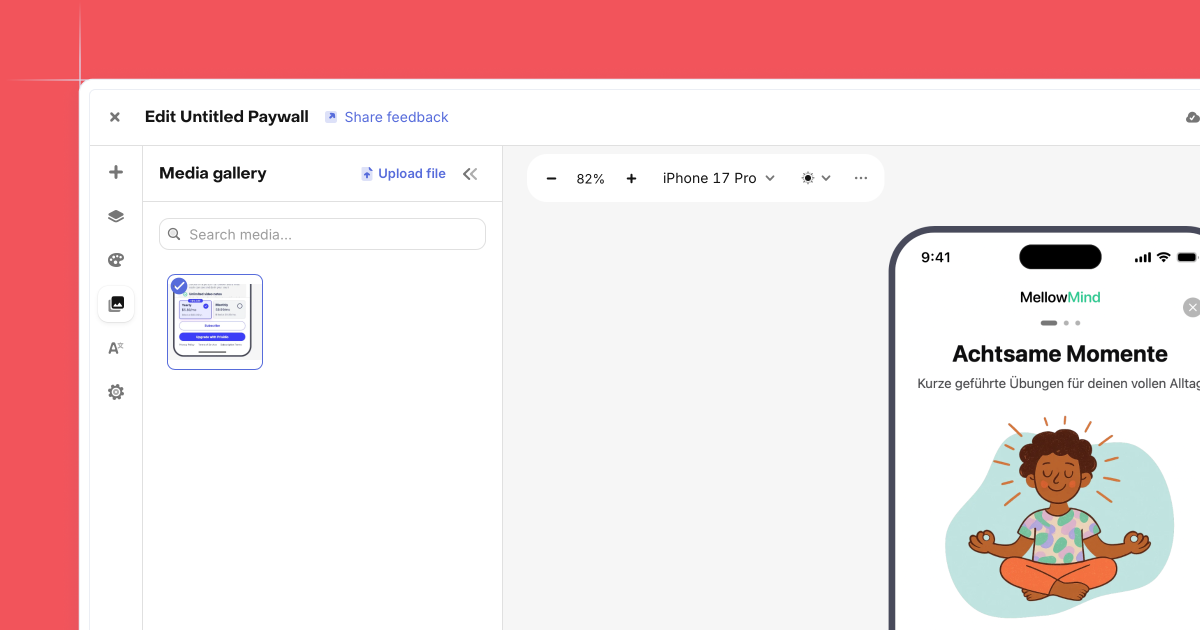 This keeps projects organized and reduces duplication, which matters when you’re running multiple paywalls or campaigns that share visuals. The Media gallery helps you move faster, stay consistent, and keep asset management simple as paywall work scales.